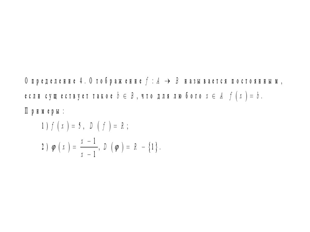 О п ред елен и е 4. О тоб раж ен и е f : A B н азы вается п остоян н ы м ,если сущ ествует такое b B , что для лю бого x A f x b.