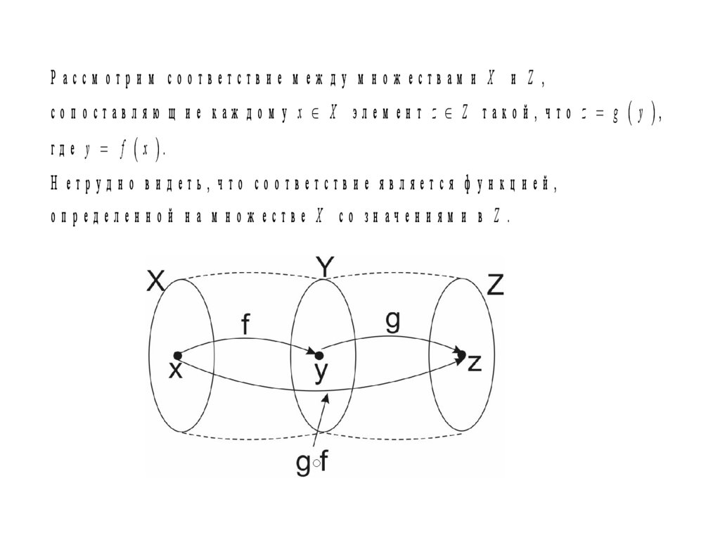 Р ассм отрим соответствие м еж ду м нож ествам и X и Z ,с о п о с т а в л я ю щ и е к а ж д о м у x X эл е м е н т z Z т а к о й , ч т о z g y ,