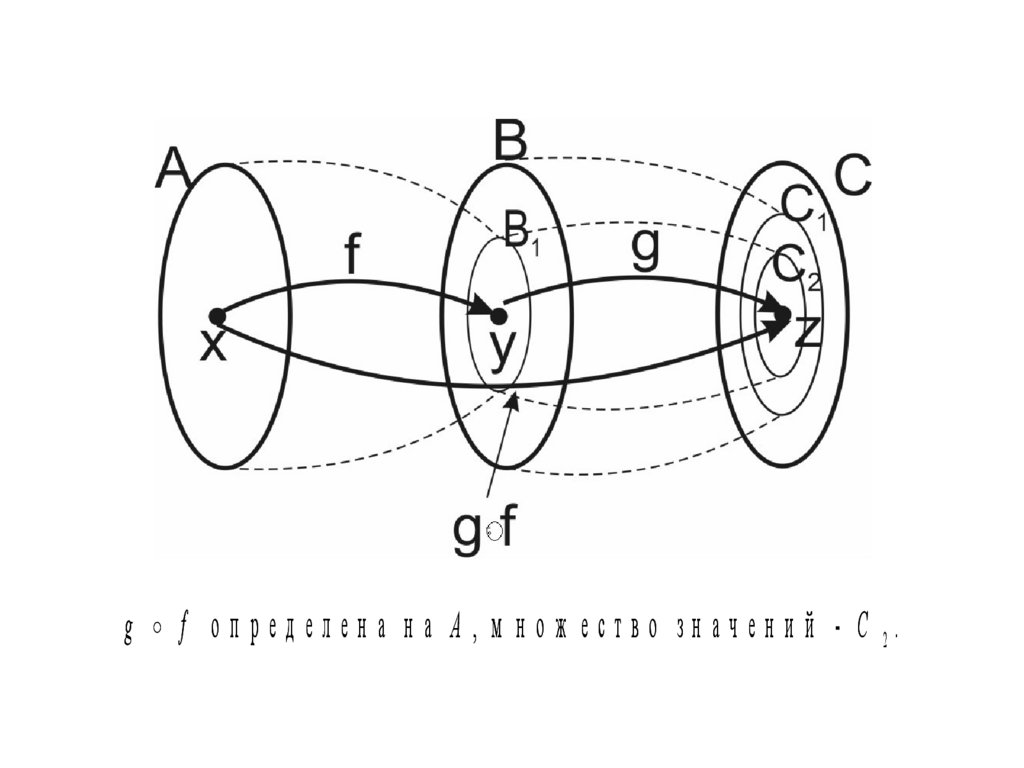 Т акая ф ун кц и я н азы вается ком п ози ц и ей ф ун кц и й f и g .О б о зн а ч а е т с я g f x z g y g f x и л и