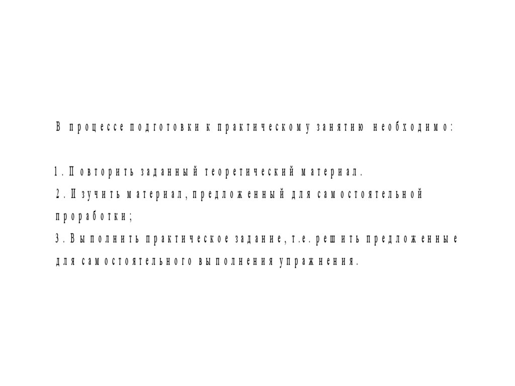 В п роц ессе п од готовки к п ракти ческом у зан яти ю н еоб ход и м о:1. П овтори ть зад ан н ы й теорети чески й м атери ал.