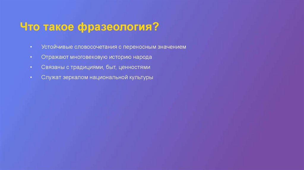 Что такое фразеология?Устойчивые словосочетания с переносным значением