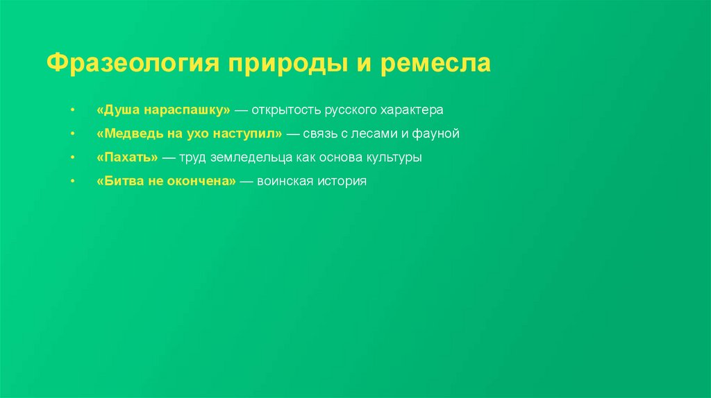 Фразеология природы и ремесла«Душа нараспашку» — открытость русского характера