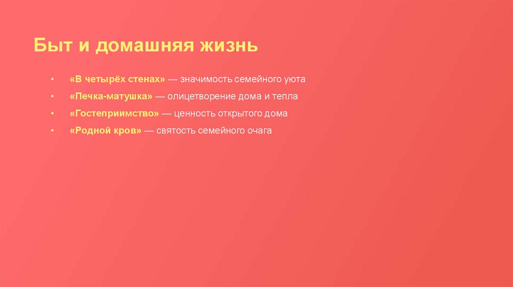 Быт и домашняя жизнь«В четырёх стенах» — значимость семейного уюта