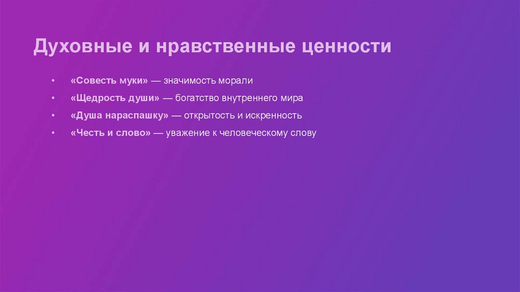 Духовные и нравственные ценности«Совесть муки» — значимость морали
