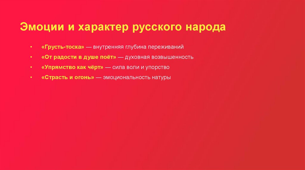 Эмоции и характер русского народа«Грусть-тоска» — внутренняя глубина переживаний