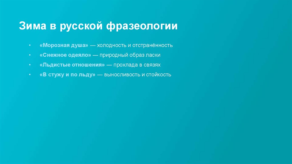 Зима в русской фразеологии«Морозная душа» — холодность и отстранённость