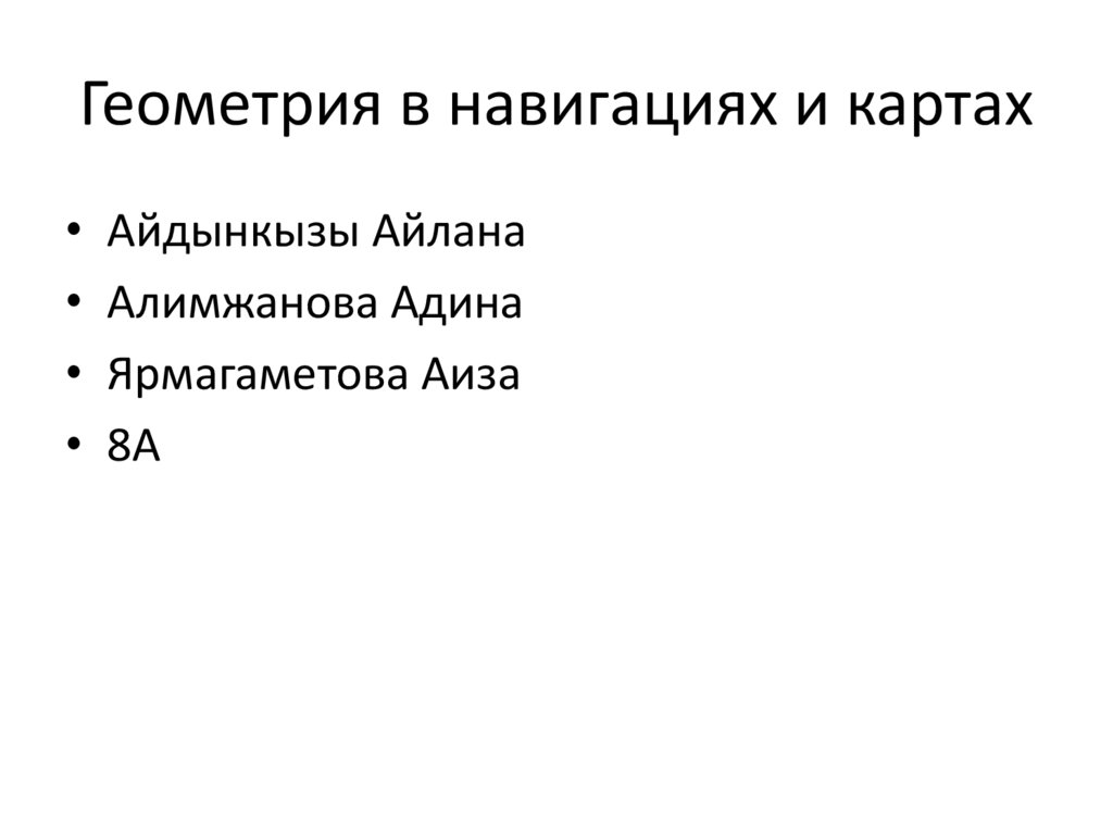 Геометрия в навигациях и картах• Айдынкызы Айлана