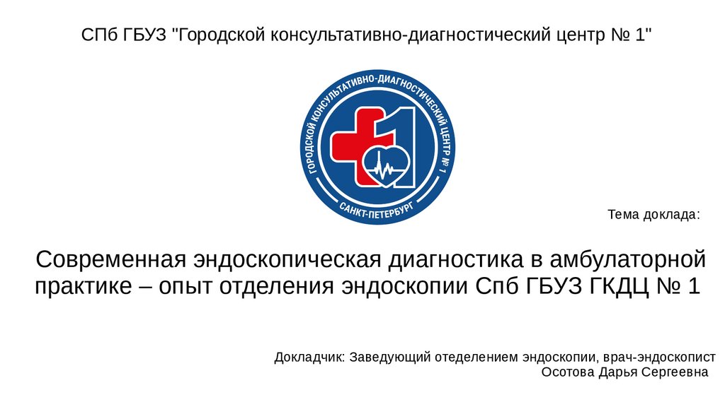 СПб ГБУЗ "Городской консультативно-диагностический центр № 1"Тема доклада: