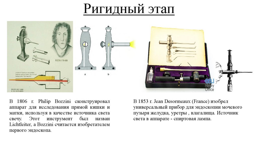 Ригидный этапВ 1806 г. Philip Bozzini сконструировал