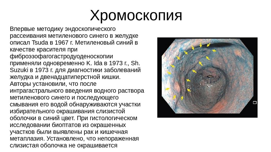 комбинируя хромоскопию с увеличительной эндоскопией, благодаря чему можно выявить