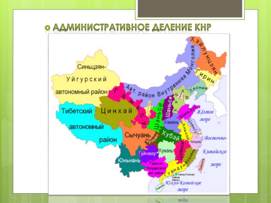 5. 23 провинции, 5 автономных районов 4 города центрального подчинения: *Шанхай *Пекин *Тяньцзинь *Чунцин