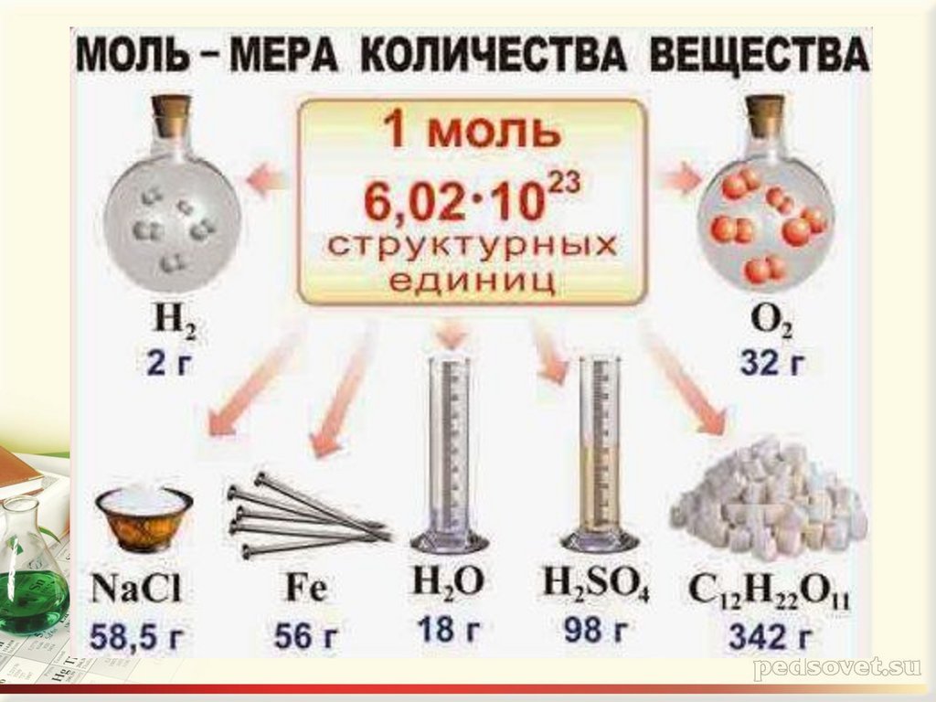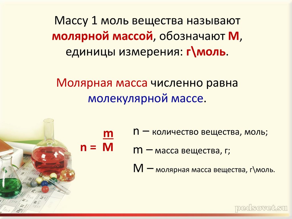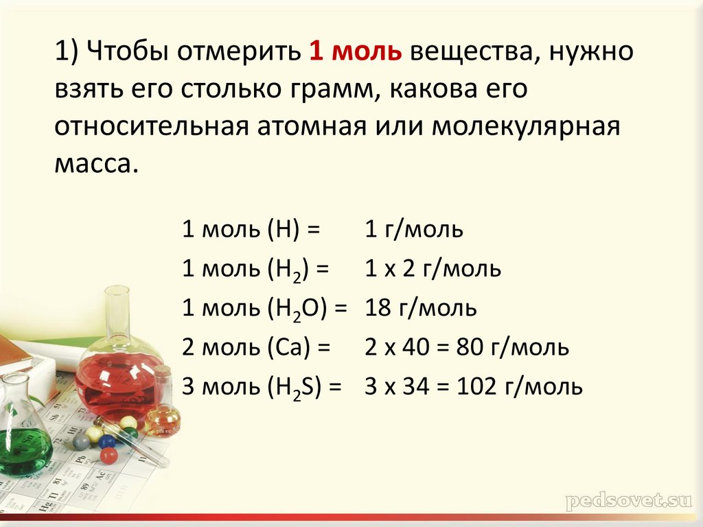 1) Чтобы отмерить 1 моль вещества, нужновзять его столько грамм, какова его
