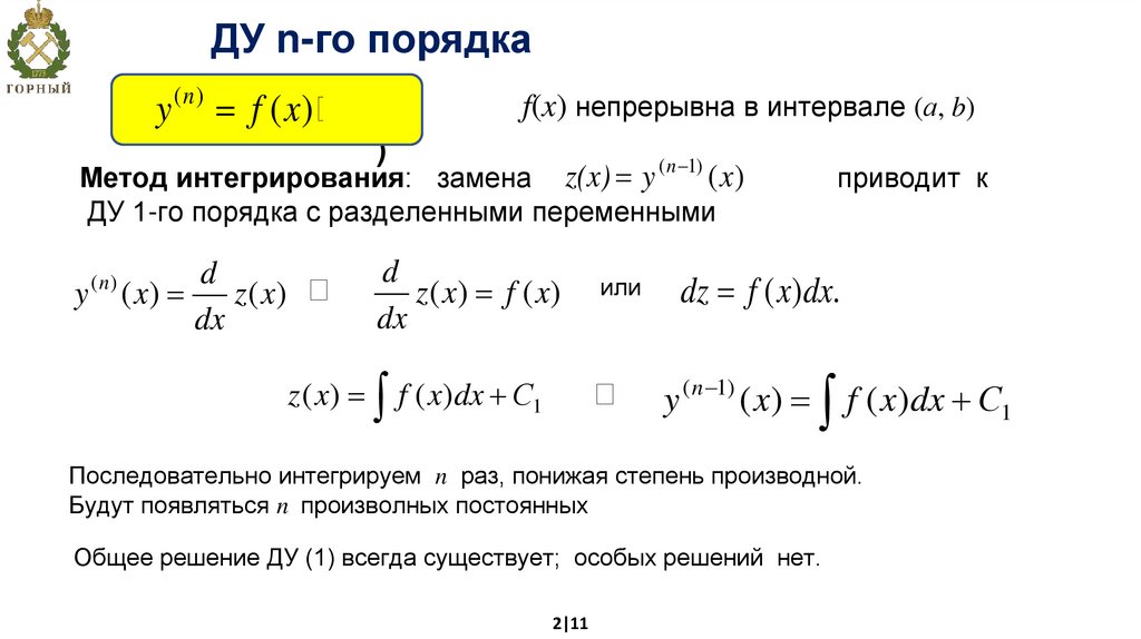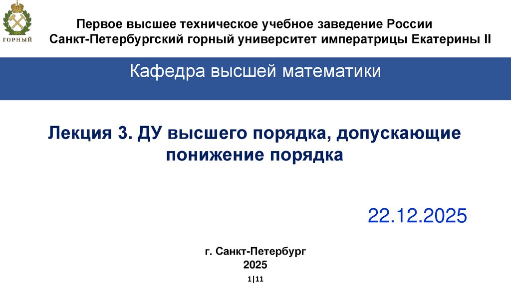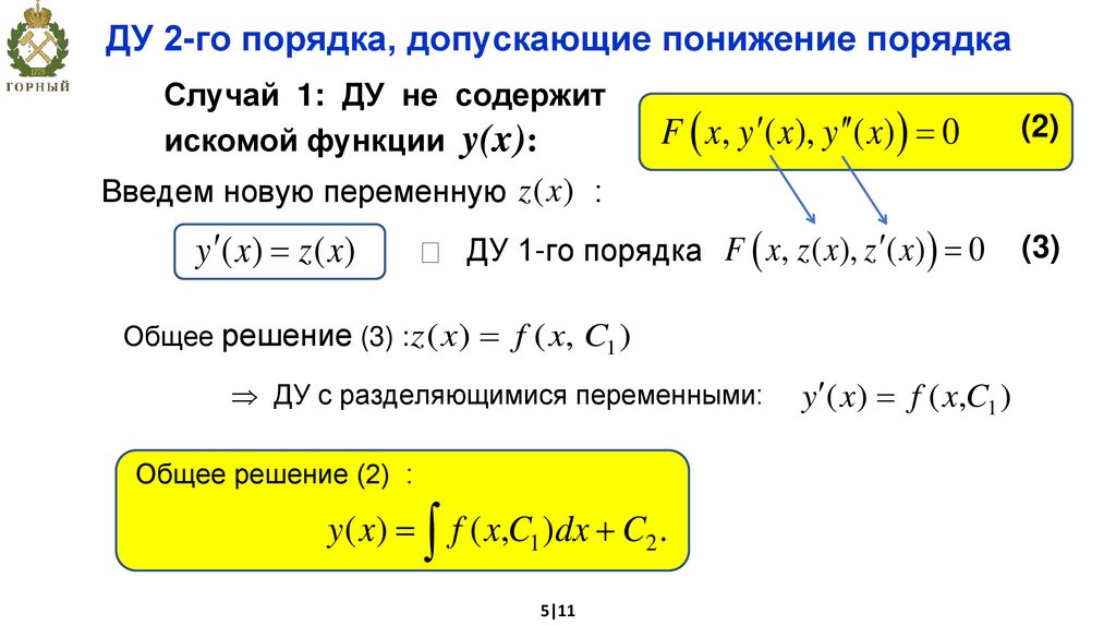 Лекция 3. ДУ высшего порядка, допускающие