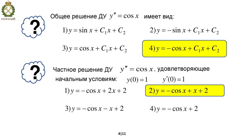 3. Общее решение ДУ y 24 х имеет вид: