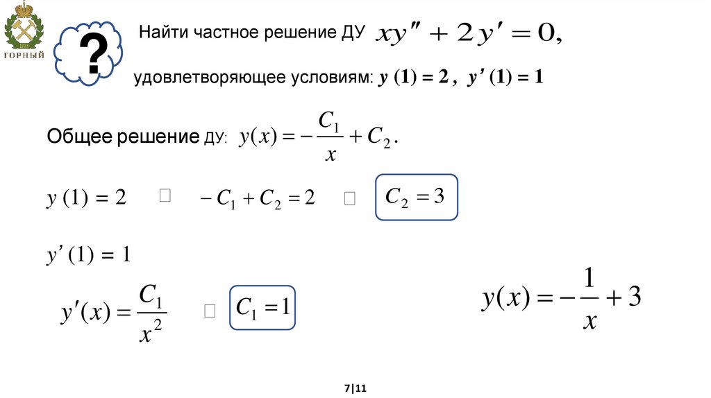 ?Найти частное решение ДУ xy 2 y 0,