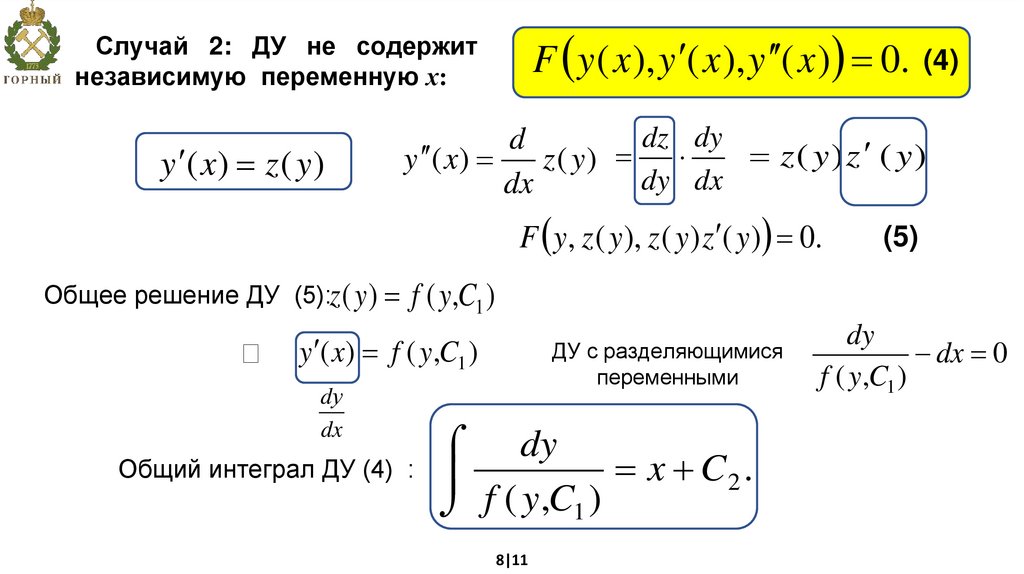 F y ( x ), y ( x ), y ( x ) 0. (4)Случай 2: ДУ не содержит