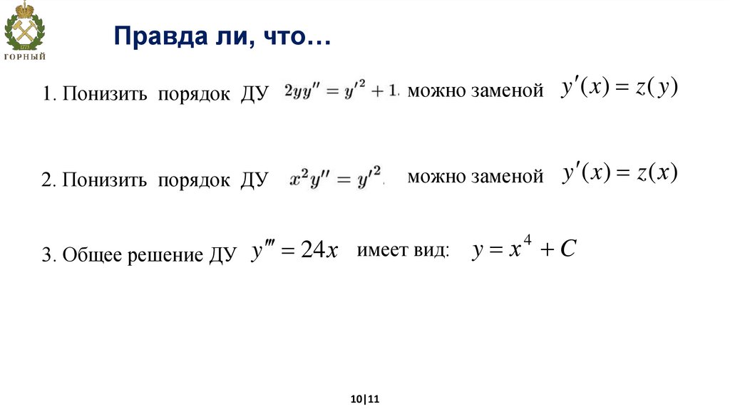 Правда ли, что…1. Понизить порядок ДУ