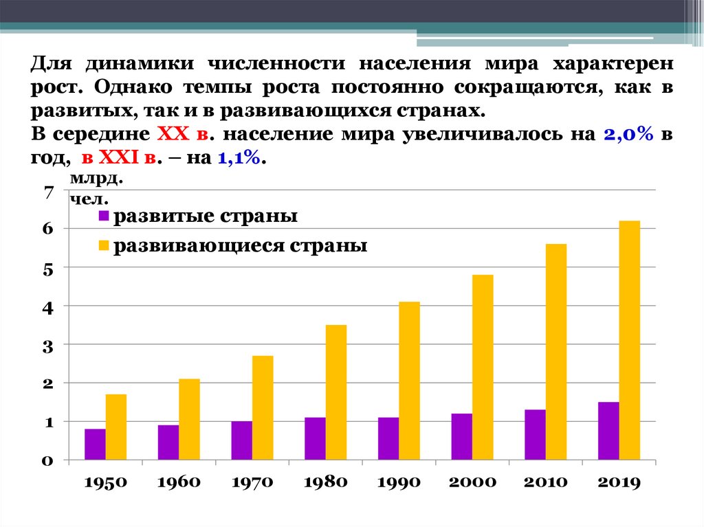 Для динамики численности населения мира характеренрост. Однако темпы роста постоянно сокращаются, как в