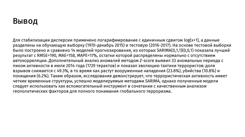 Прогнозирование террористических атак сиспользованием моделей одномерных временных
