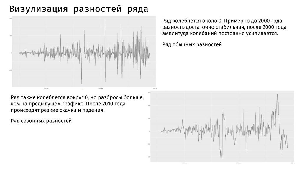Визулизация разностей рядаРяд колеблется около 0. Примерно до 2000 года