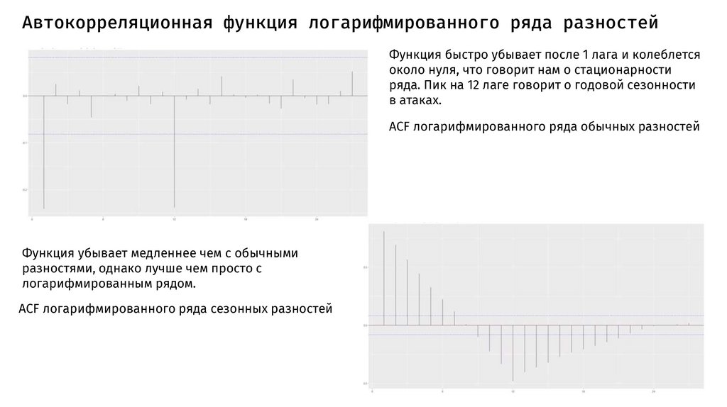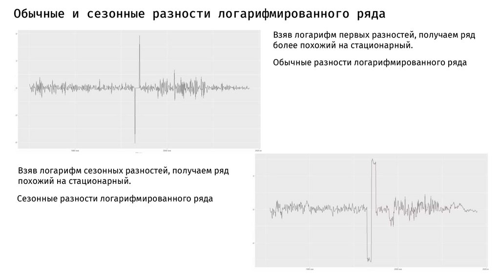 Обычные и сезонные разности логарифмированного рядаВзяв логарифм первых разностей, получаем ряд