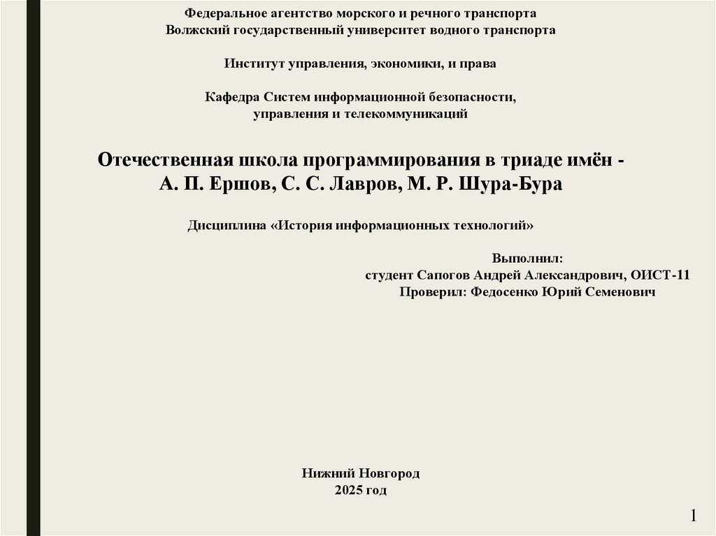 Отечественная школа программирования в триаде имён А. П. Ершов, С. С. Лавров, М. Р. Шура-Бура