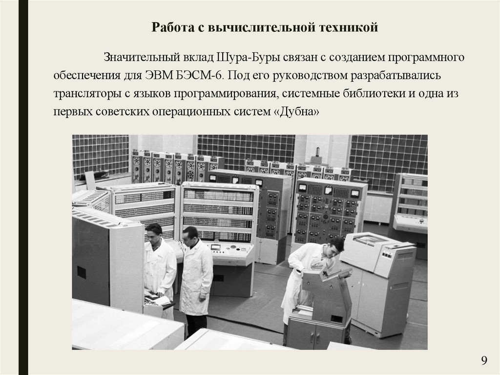 Работа с вычислительной техникойЗначительный вклад Шура-Буры связан с созданием программного