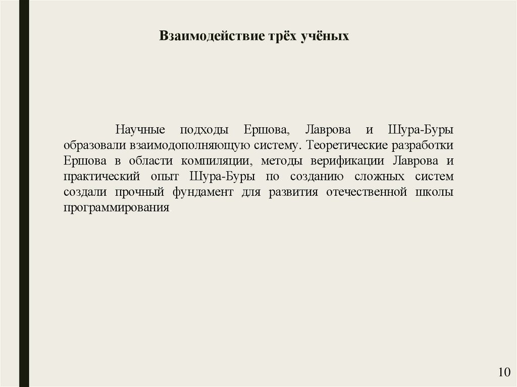 Взаимодействие трёх учёныхНаучные подходы Ершова, Лаврова и Шура-Буры