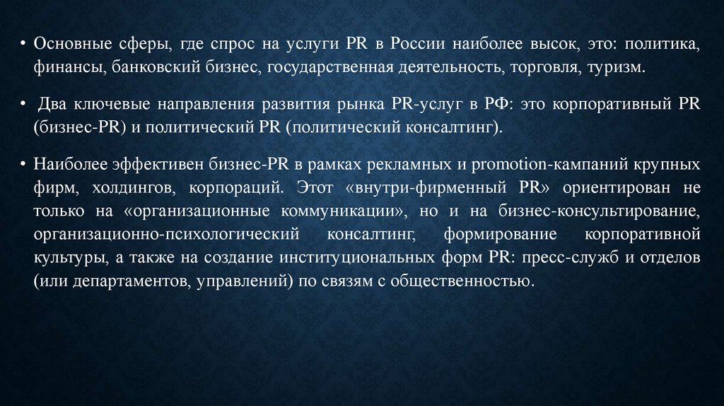 отношений во всех сферах российской экономики, зародился отечественный PR: развитие предпринимательской