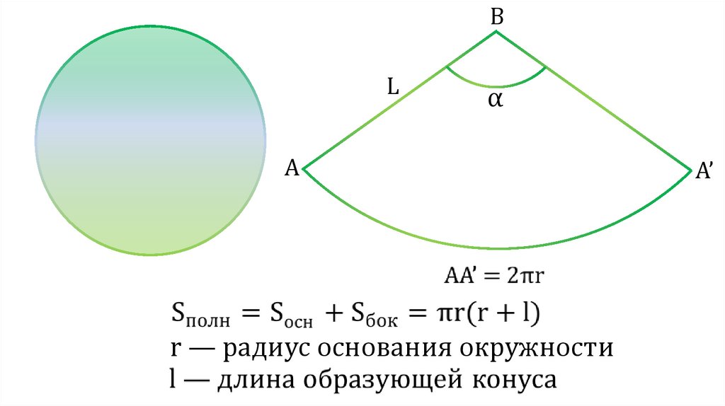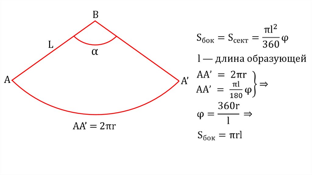 l — длина образующей