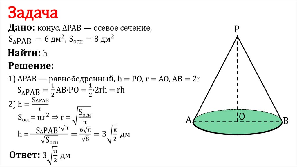 ЗадачаДано: конус, ∆PAB — осевое сечение,