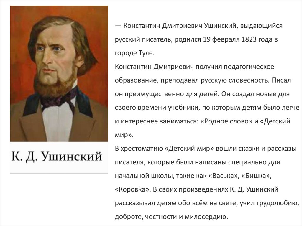 — Константин Дмитриевич Ушинский, выдающийсярусский писатель, родился 19 февраля 1823 года в