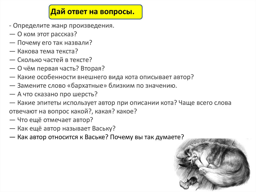— Какие эпитеты использует автор при описании кота? Чаще всего слова