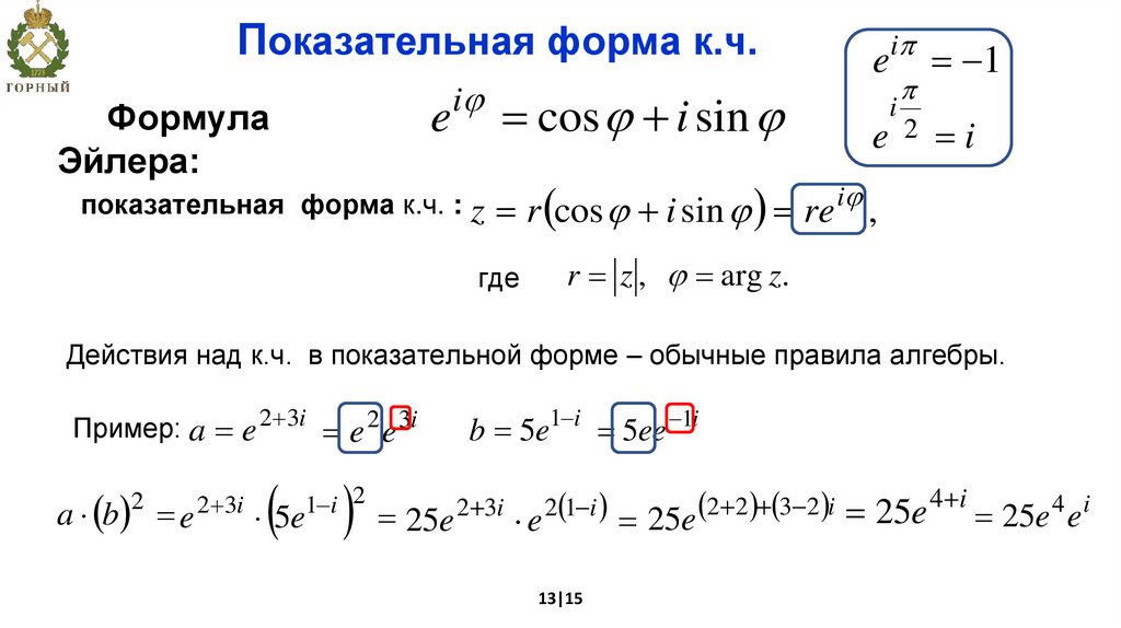 Действия над к.ч. в показательной форме – обычные правила алгебры.
