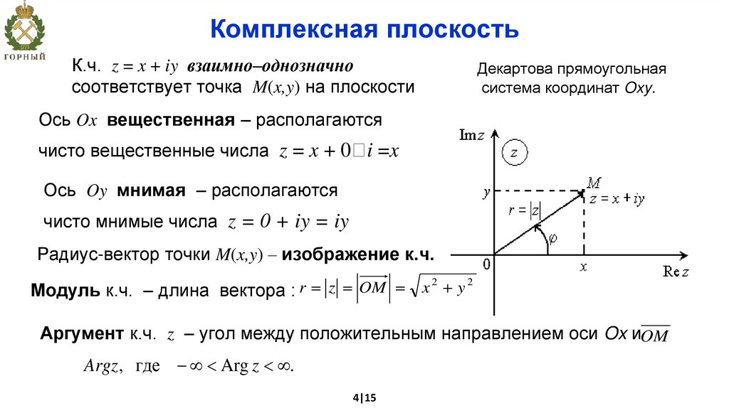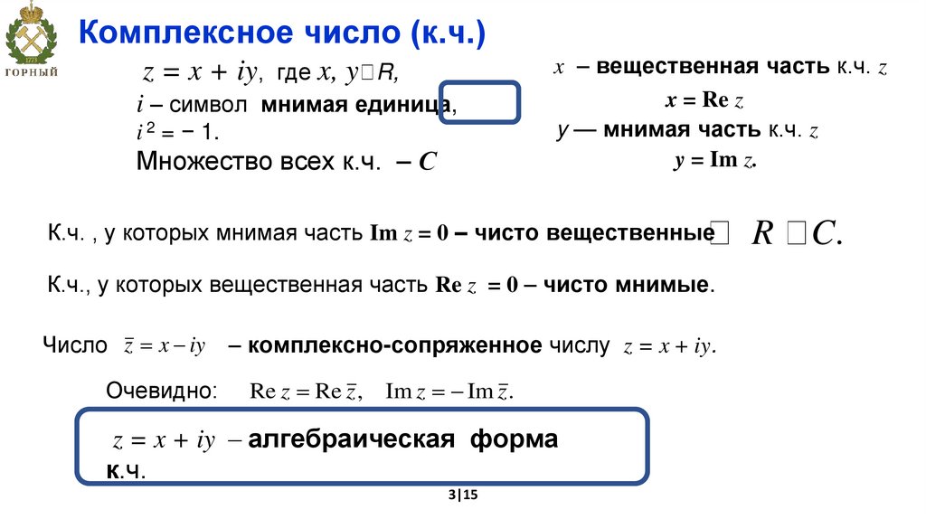 Комплексное число (к.ч.)z = x + iy, где x, y R,