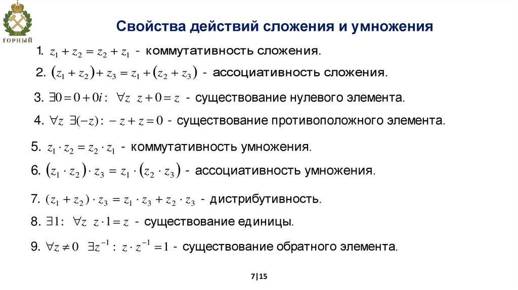 2. z1 z2 z3 z1 z2 z3 - ассоциативность сложения.