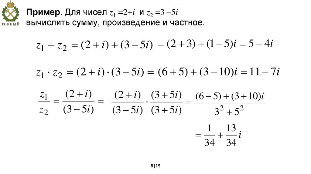 z1 z 2 x1 iy1 x 2 iy 2 x1 x 2 y1 y 2 i