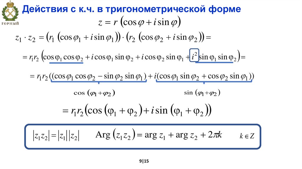 r1 cos 1 i sin 1 cos 2 i sin 2