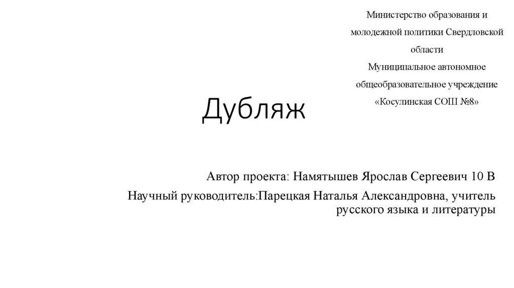 Автор проекта: Намятышев Ярослав Сергеевич 10 В