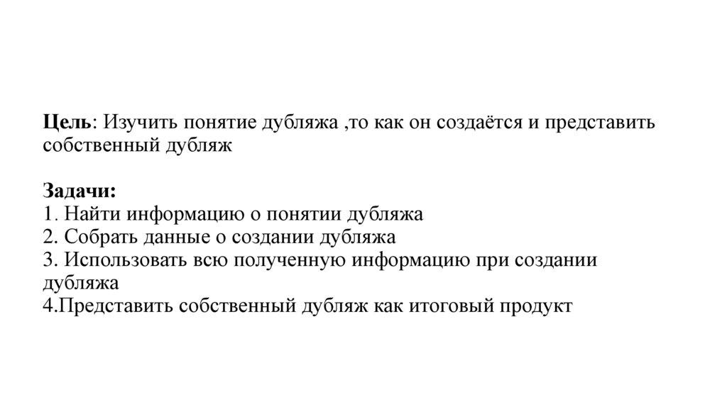 Цель: Изучить понятие дубляжа ,то как он создаётся и представитьсобственный дубляж