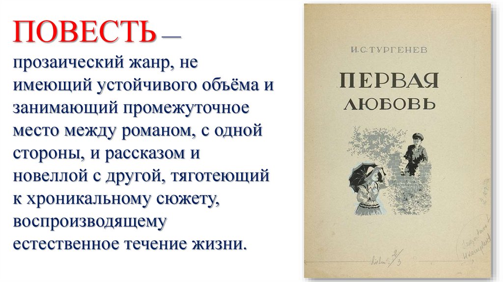 ПОВЕСТЬ —прозаический жанр, не