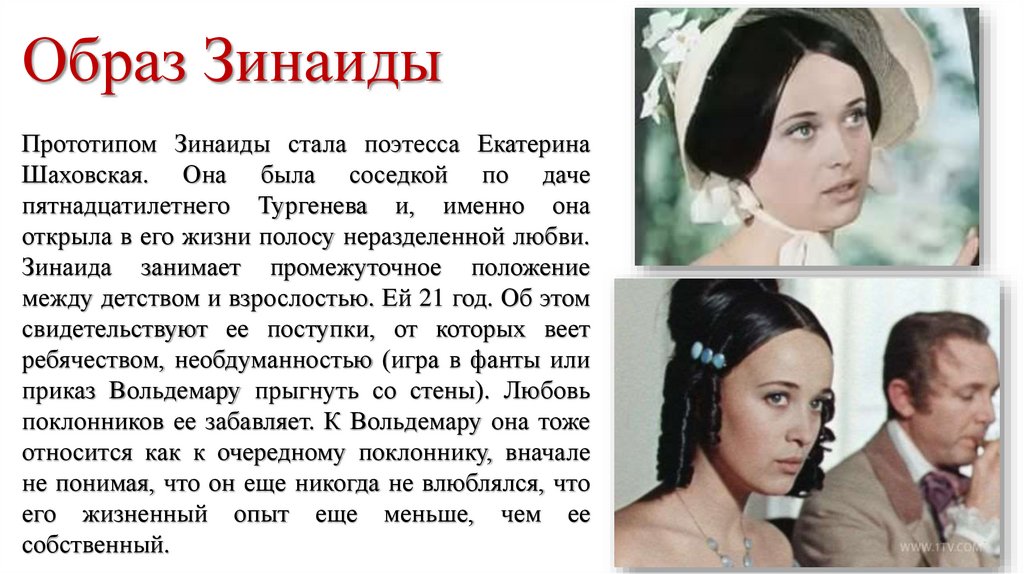 Образ ЗинаидыПрототипом Зинаиды стала поэтесса Екатерина