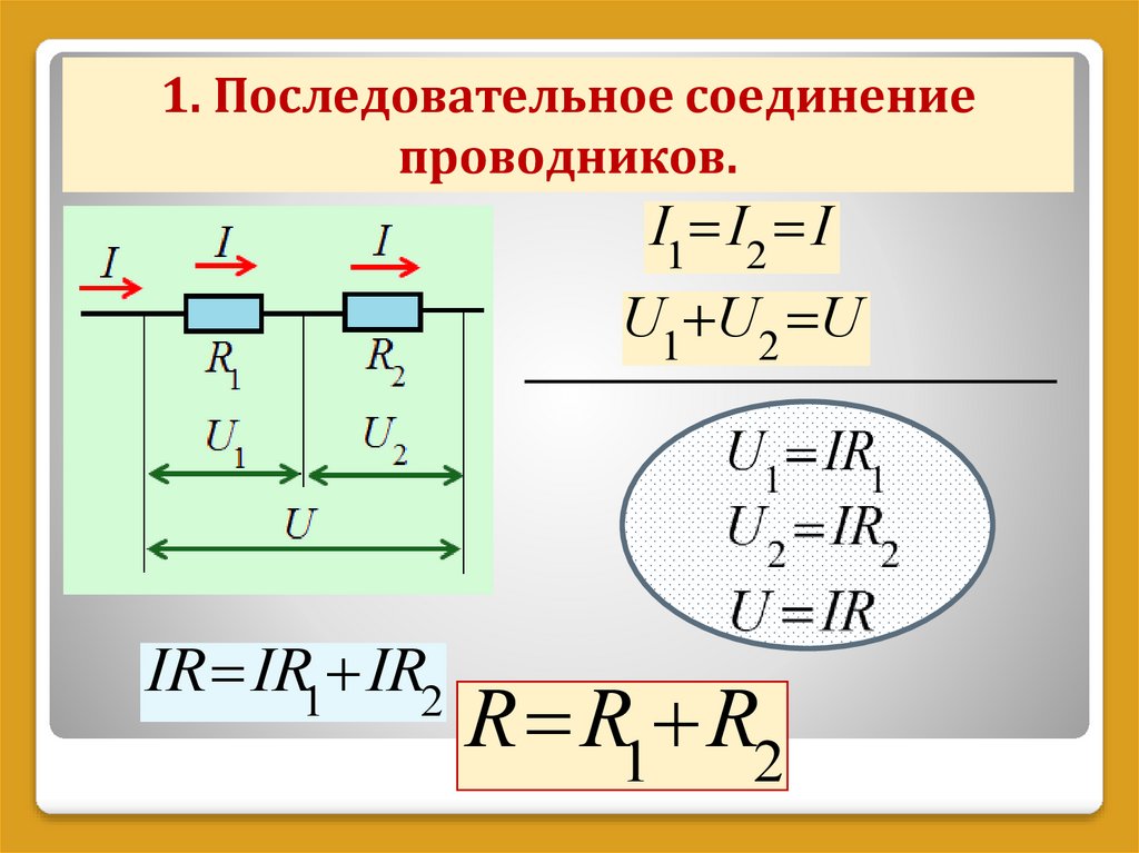 Для участка цепи с двумя последовательносоединенными проводниками, имеющих
