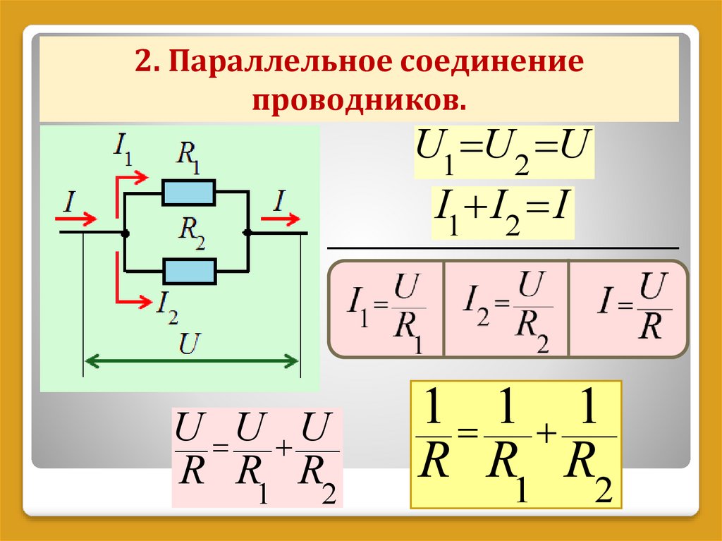 При параллельном соединении законДжоуля – Ленца для каждого потребителя с