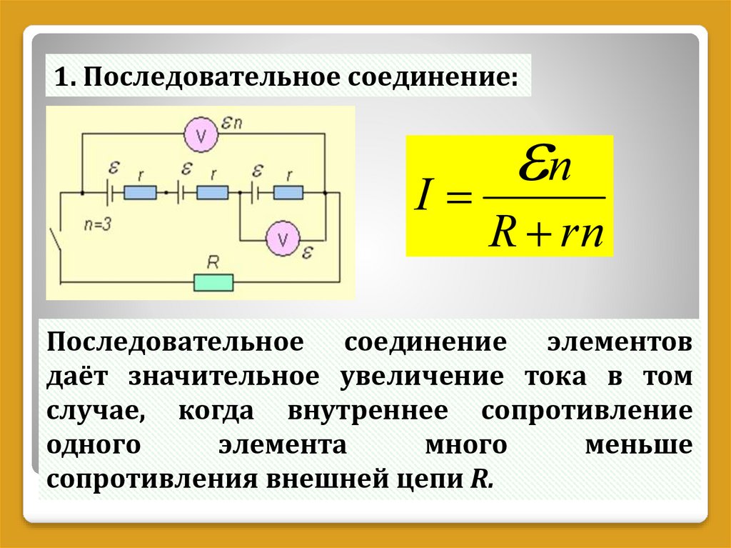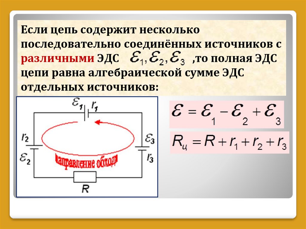Если цепь содержит несколькопоследовательно соединённых источников с