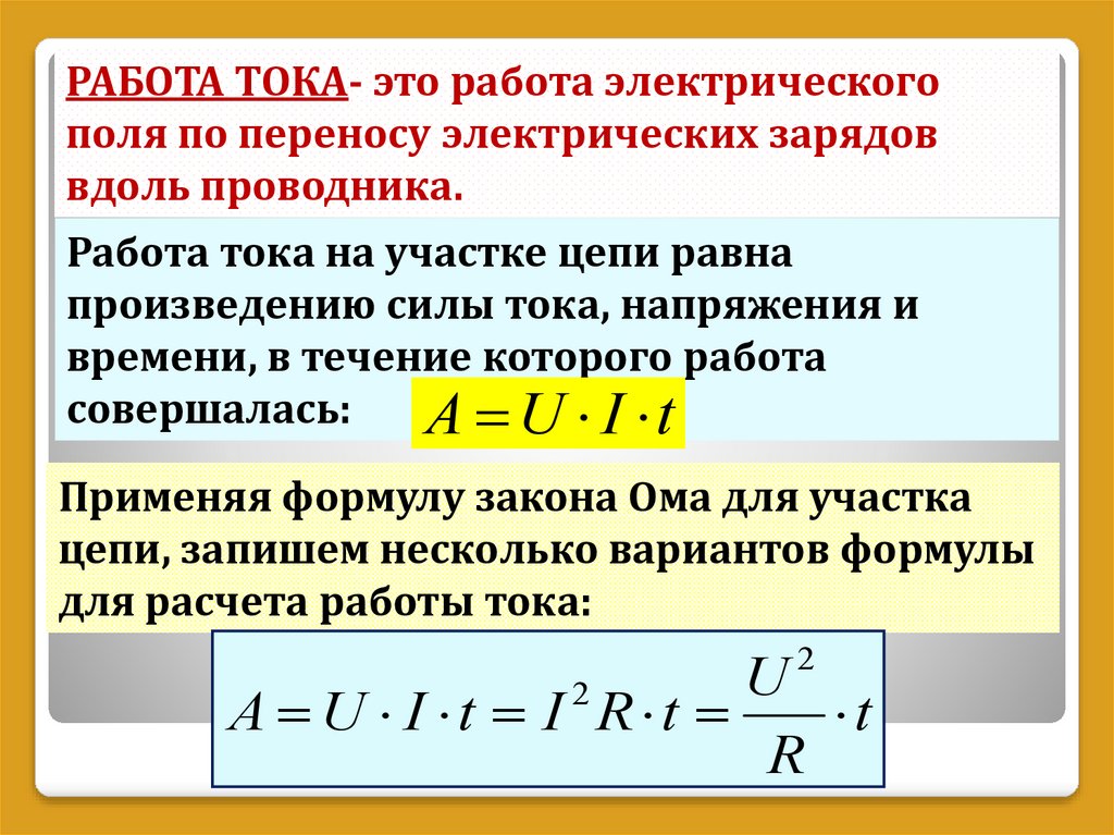 РАБОТА ТОКА- это работа электрическогополя по переносу электрических зарядов