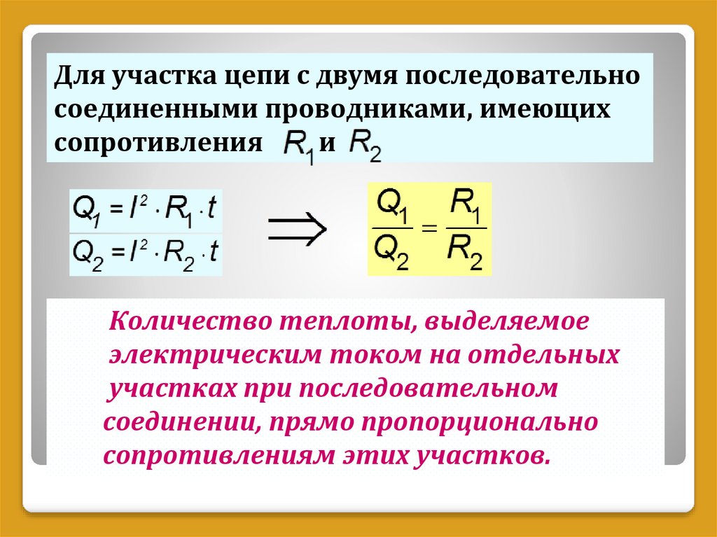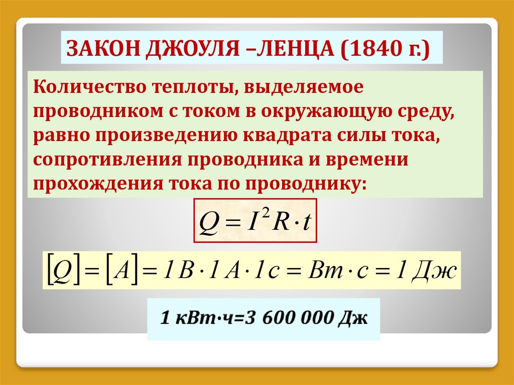 ЗАКОН ДЖОУЛЯ –ЛЕНЦА (1840 г.)Количество теплоты, выделяемое