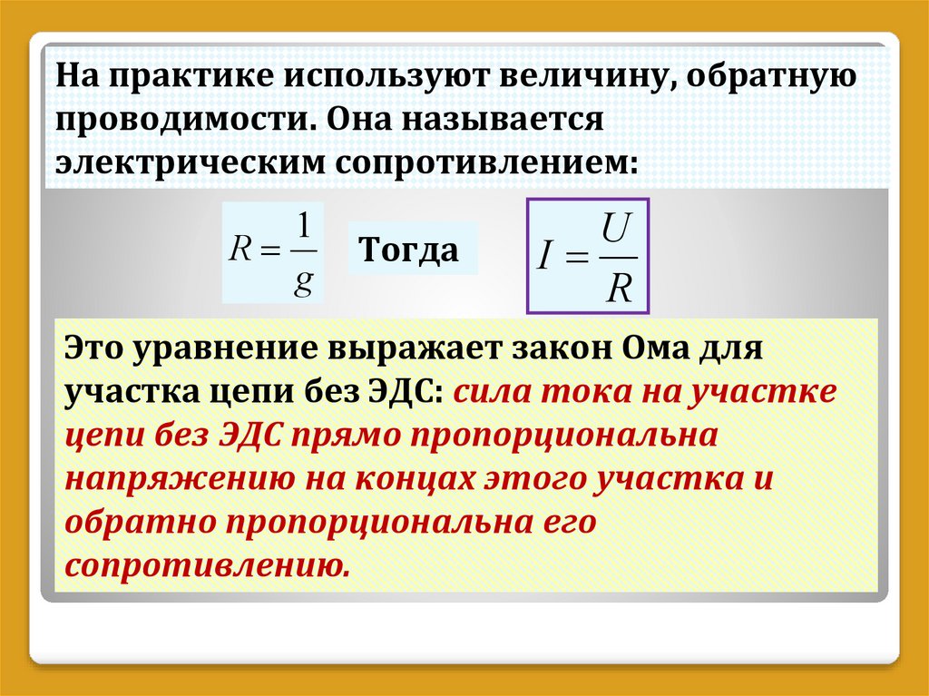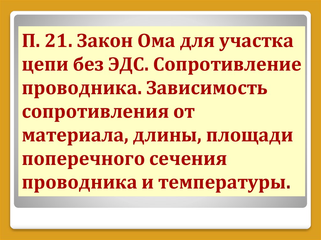 П. 21. Закон Ома для участкацепи без ЭДС. Сопротивление