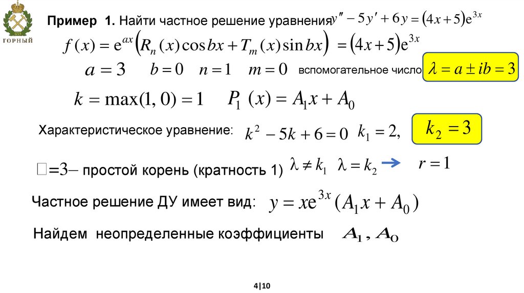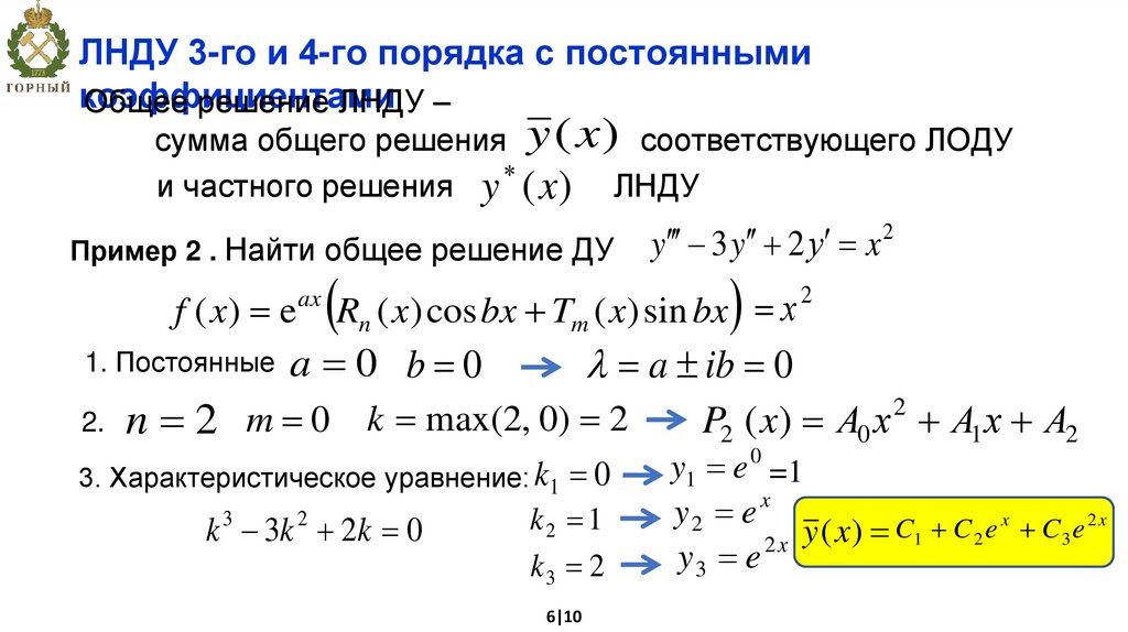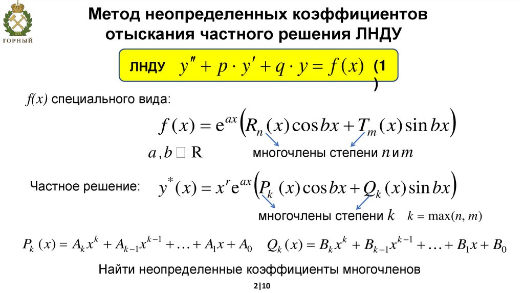 Метод неопределенных коэффициентовотыскания частного решения ЛНДУ