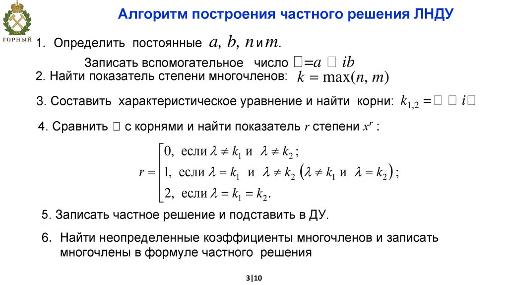 Алгоритм построения частного решения ЛНДУ1. Определить постоянные a, b, n и m.